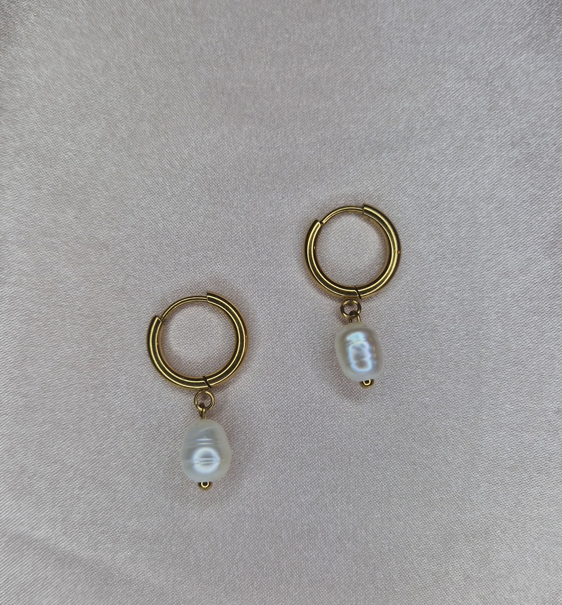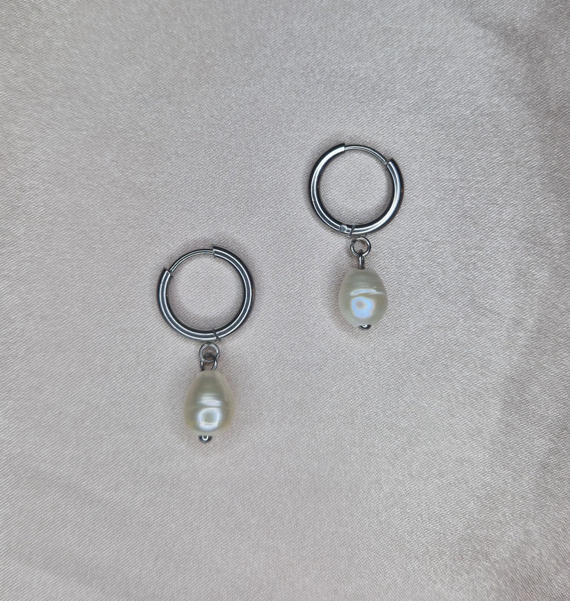 Boucles d'oreilles fait main en acier inoxydable avec perles d'eau douce.